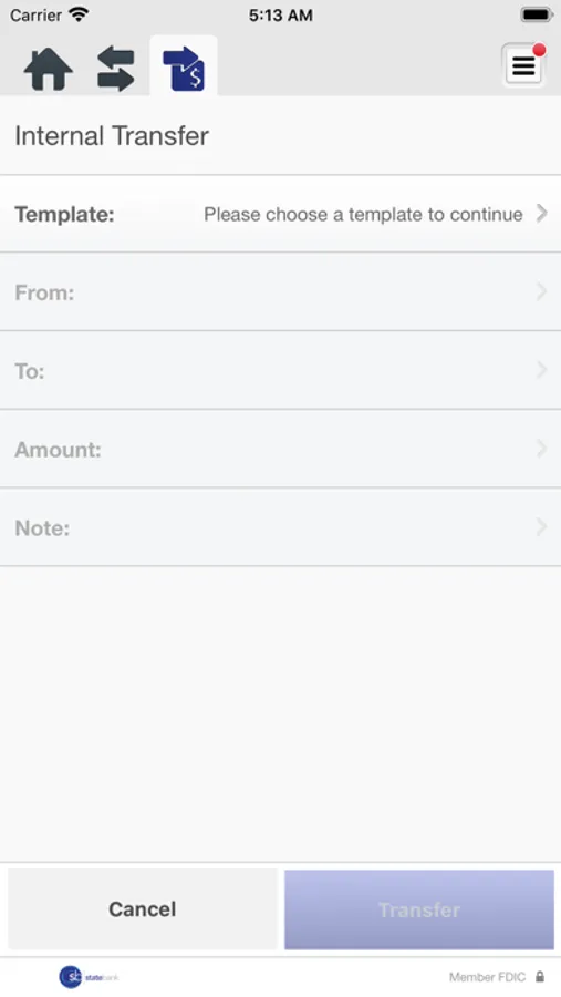 • Transfer money between accounts