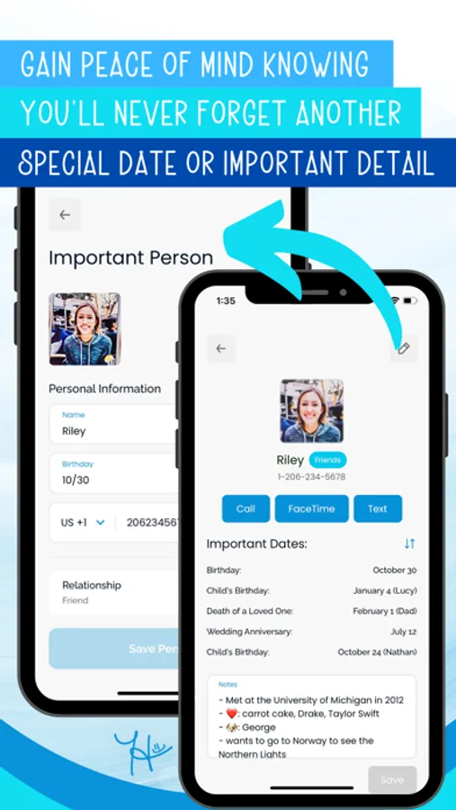 - Important People Organizer: Remember important dates with push notification reminders.