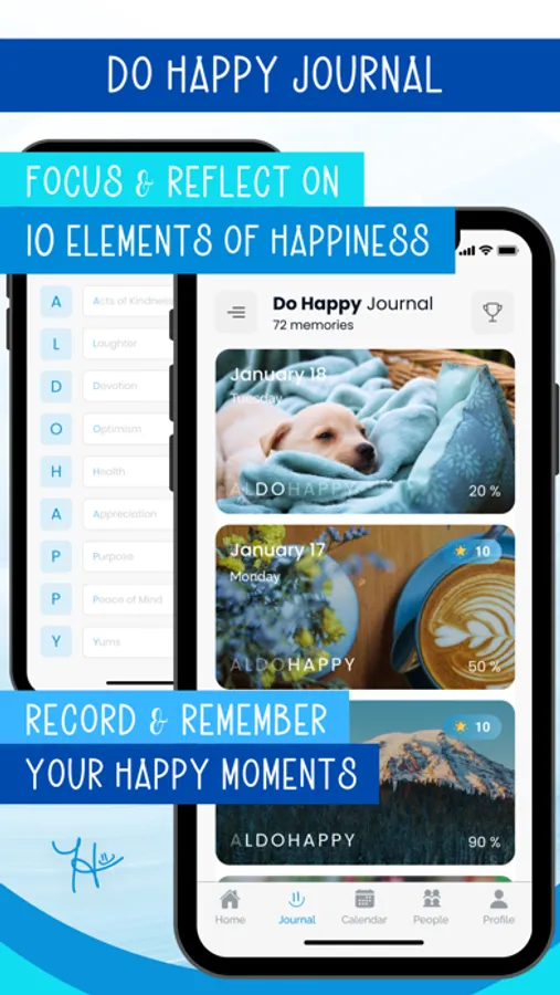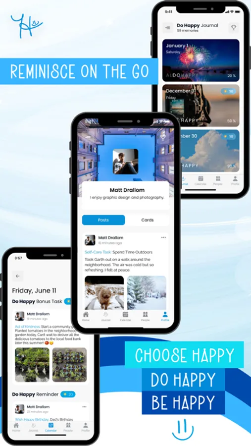 Every day, the Do Happy® app presents you with a Do Happy Task of the Day, making it easy to incorporate happiness into your routine. By consistently engaging with these tasks and harnessing the app's holistic features, you're set on a path to attain inner balance. Moreover, with every task you complete, reflection you share, and photo you upload, the app evolves into more than a tool—it becomes your personal memory book of happiness!