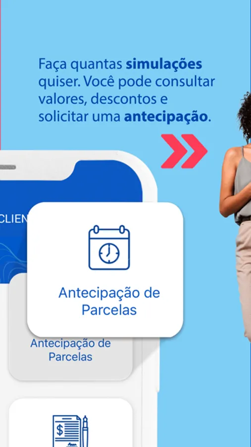 Simulação e solicitação para pagamento de parcelas antecipadas, consultando valores e descontos;