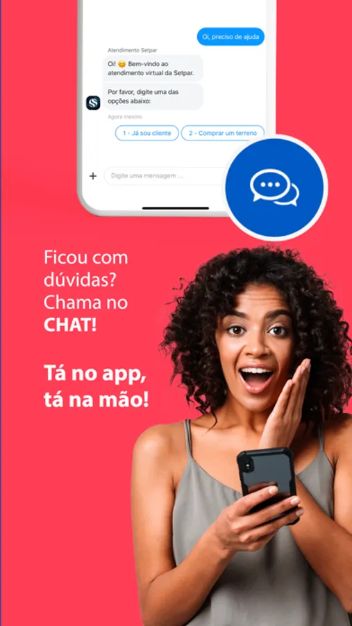Chat para atendimento dentro do aplicativo para tirar suas dúvidas relacionadas ao seu terreno.