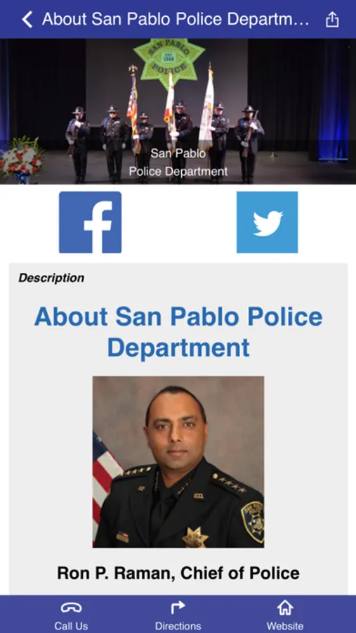 This app is for the employees of the San Pablo Police Department and the community it serves. It contains information about our department as well as safety and crime prevention tips. SPPD Employees will have access to a full range of wellness tools.