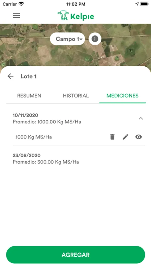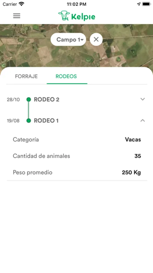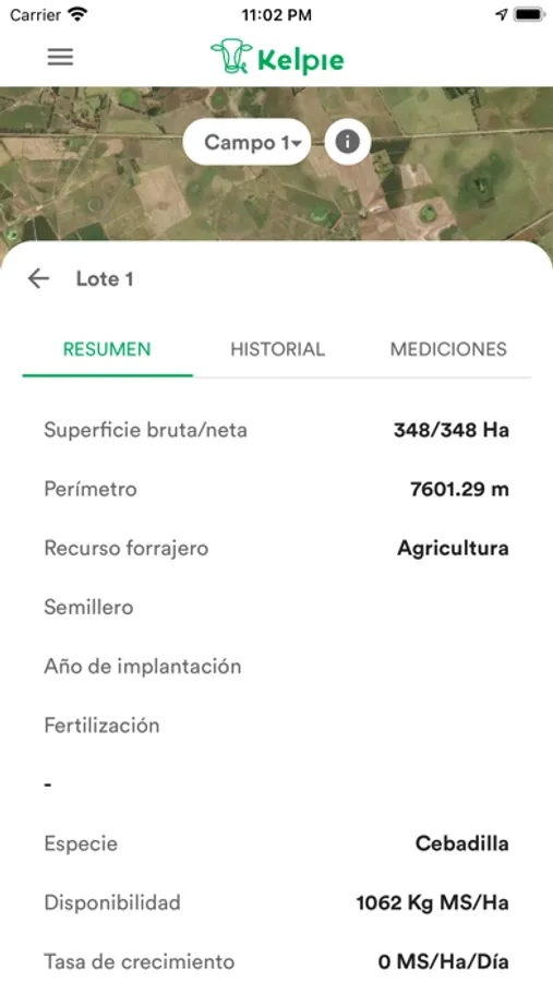 Kelpie es una plataforma de gestion del pastoreo. Registra la disponibilidad de tus lotes, conoce su tasa de crecimiento, carga tus mediciones, asigna/desasigna rodeos, agrega eventos y segui tus circuitos forrajeros desde un solo lugar.