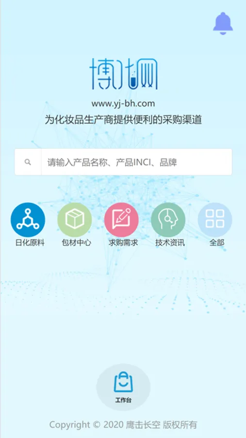 “博化网”在线采购平台,为化妆品生产商家和品牌商提供原料采购服务,具备全化妆品原料商品、化妆品包材、服务项目信息查询,发布求购需求,制作电子产品目录等,并提供超过5000个原材料商品预订合作功能。