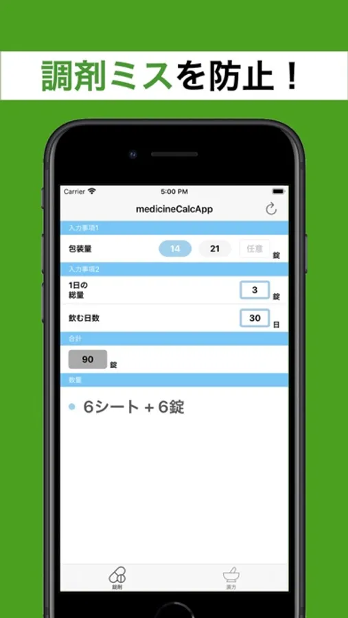 調剤する薬の総量および必要シート量、錠数を算出するアプリケーションです。