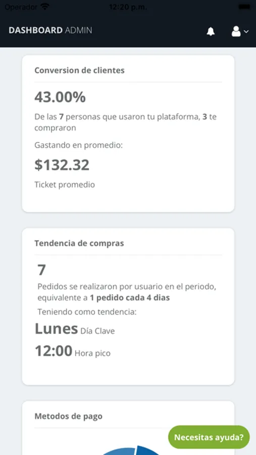 Dashboard es la aplicación que se conecta con tu panel de administración de tu empresa para administrar tus productos, pedidos, promociones y más.