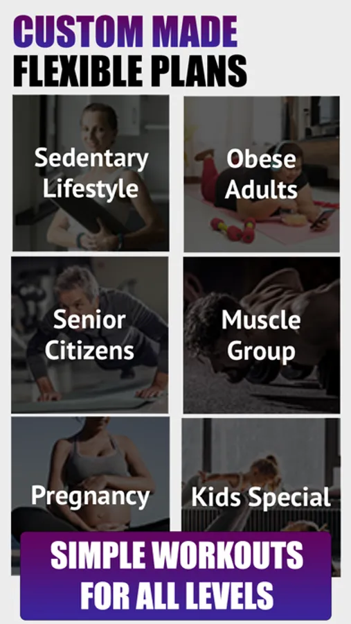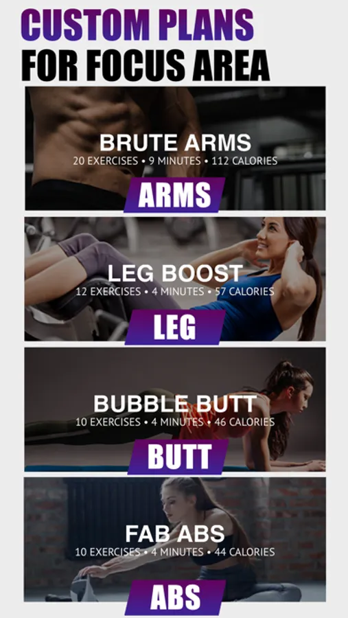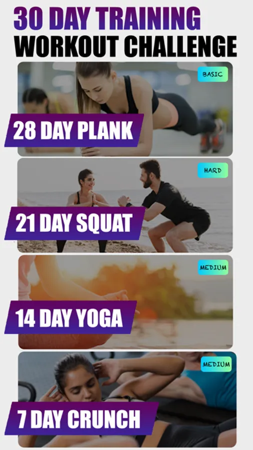 1. Choose whether want to follow workout challenges or customized plans for various levels and needs.