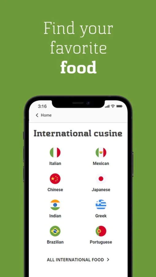 - international cuisine (Italian, Mexican, Chinese, Greek, etc.)