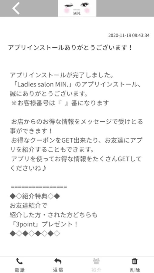 MIN.のアプリをSNSを通じてお友達に紹介する事ができます。
