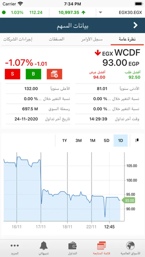 • Market Overview offers a summary of the subscribed market sessions: Turnover, Volume, Trade details of the market, Top Active by Volume, Latest News & Announcements, Sector Summary & many more.