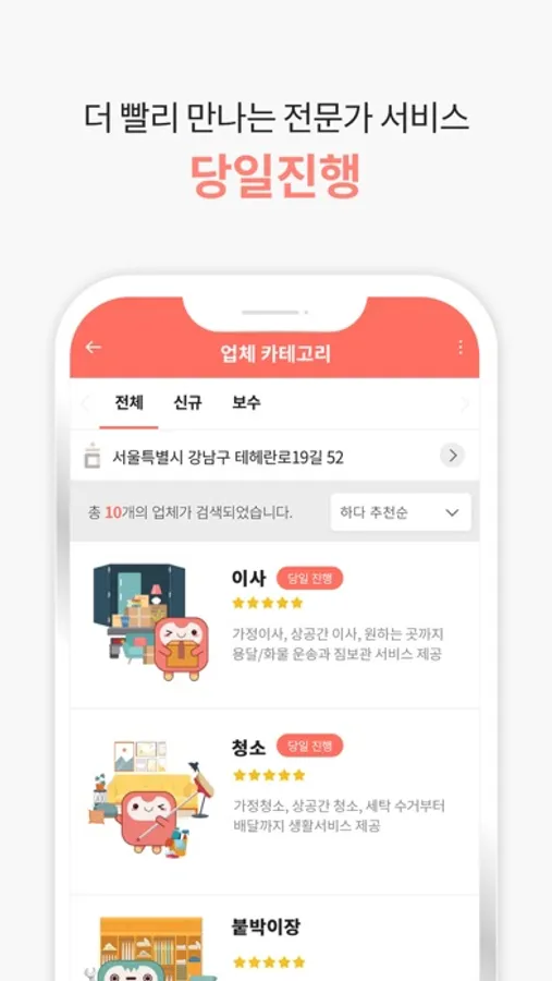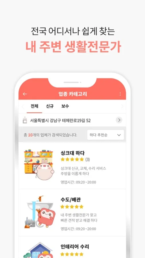 - 시/군/구 위치기반 매칭으로 원하는 서비스 희망 지역 주변의 전문가를 손쉽게 찾을 수 있습니다.