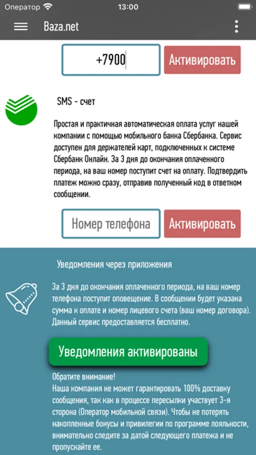 - узнать состояние Вашего счета, тариф, дату следующего платежа;