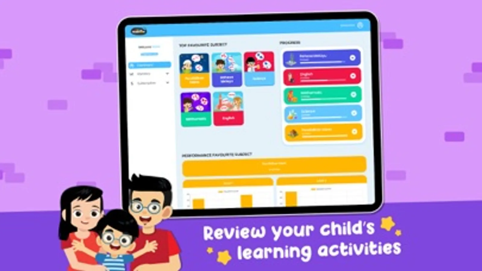 This application also provides a platform for parents to monitor performance of their children. This includes the amount of learning and play time, the number of completed activities, newly played games and more.