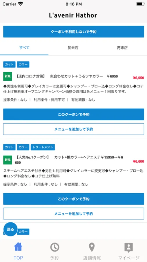 お得なクーポンが配信されます。ネット予約時にクーポン利用での予約も可能なので来店時もスムーズに施術頂けます。