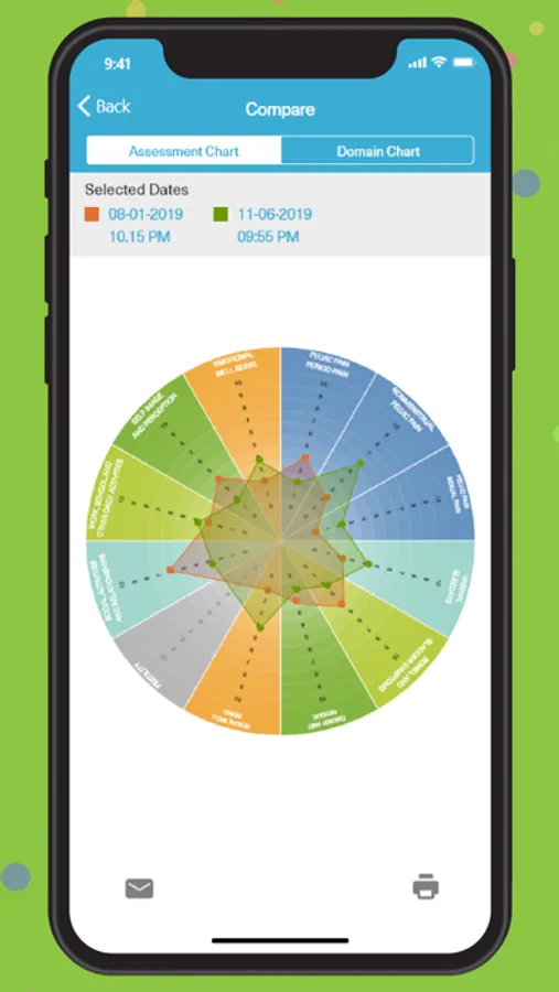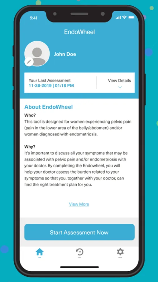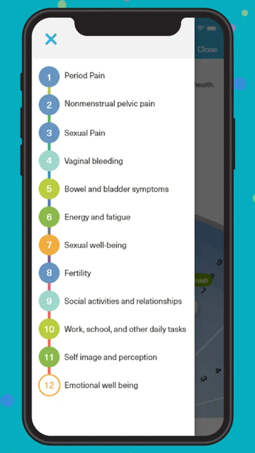 The EndoWheel tool is a self-administered mobile application designed for patients and their healthcare professionals to use to visually track symptoms and overall disease burden. Users can respond to symptom questions and results are displayed through a radar chart. Assessments are stored automatically (though they can be deleted by the user) to be used in historic comparison.