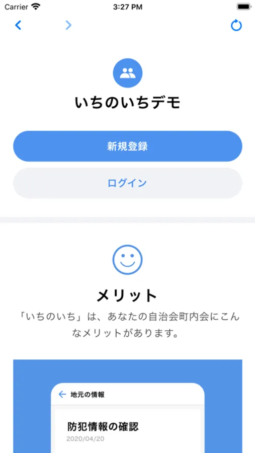 同じ街の人とイベント/フリマ/防災情報を共有しよう。