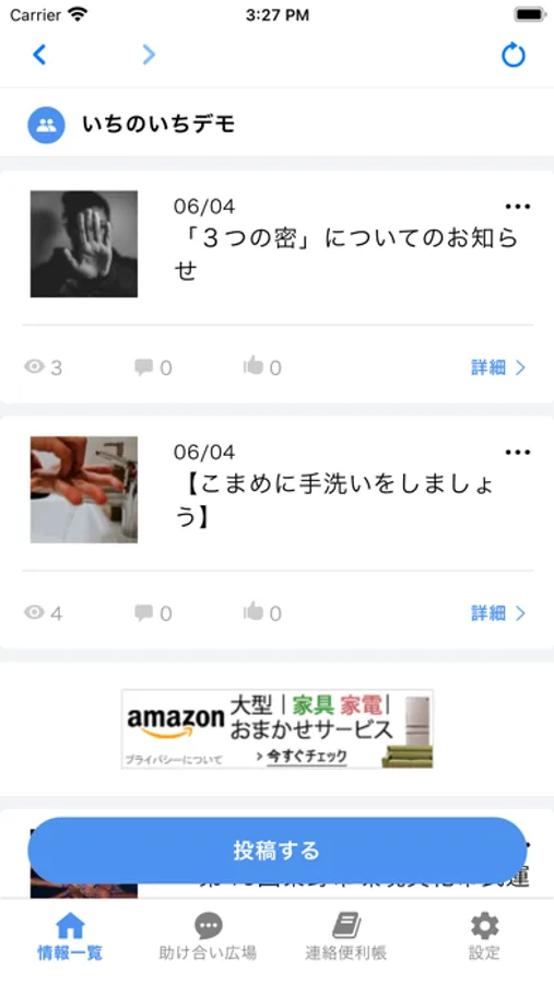 例えば、買い物に行けない高齢者と近所の人がつながったり、尋ね人や、地域での防犯情報などの情報交換もできます。