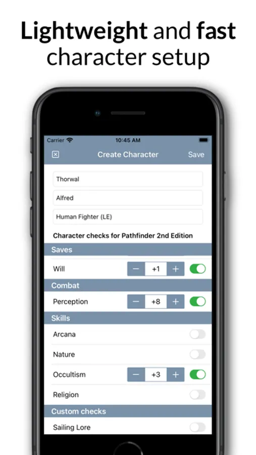 - Lightweight app design: Quick creation and setup of parties and characters.