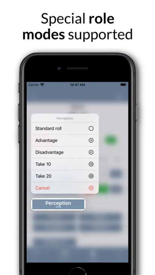 - Quick access to attribute checks, saves and skill checks for the entire party.