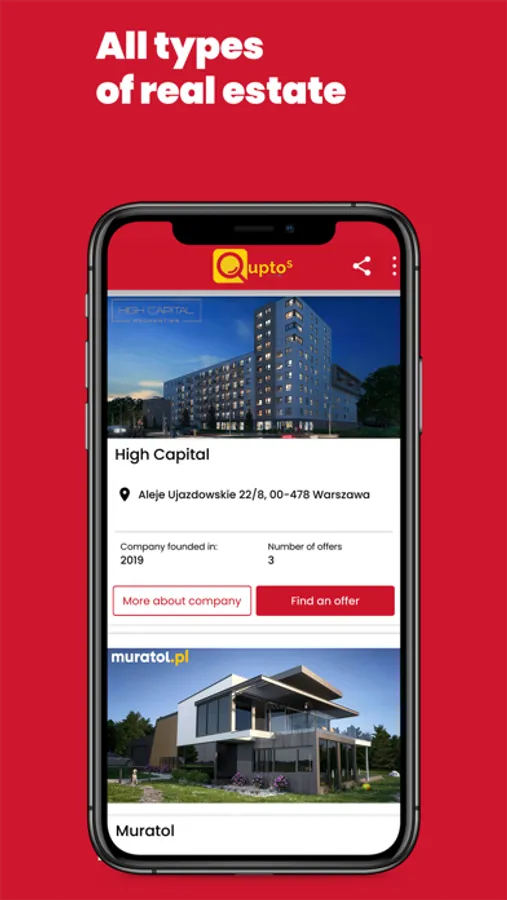 Are you looking for your dream home, or maybe you want to sell yours? Thanks to the QuptoS application, you can buy, sell or rent real estate anywhere in the world. We have a wide selection of the latest offers from the largest developers and real estate brokers on the Polish market. What makes our application unique among others? Thanks to the transfer of all properties to the virtual world and the extensive AVR mode, we give the opportunity to visit the property in the real world, while ensuring full immersion. Buy your future today.