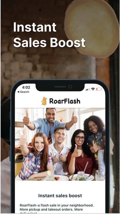 Our app generates a Flash Offer Ad that includes everything your customers need to know - your product image, original and discounted price, business name, item or service name, offer ending time, business location, discount percentage, and discount code. This offer will also appear on the RoarFlash Customer app, giving your business even more exposure.