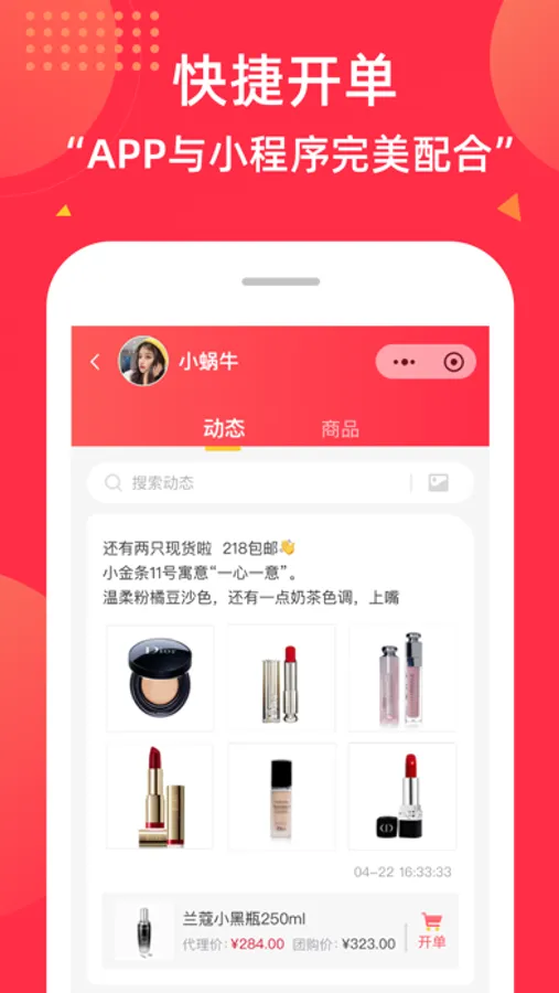 注册即拥有自己的店铺,超简单发布商品,商品描述即自动关联的素材;代理价自动跟据设置计算给不同等级的代理,代理一键加价转存到自己的团队;