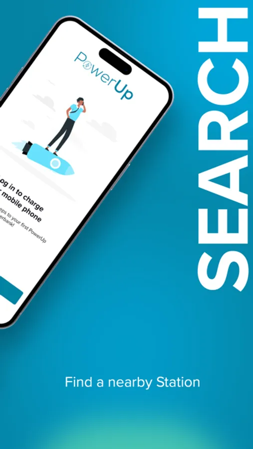 Open the PowerUp app to find the nearest Powerbank station. 2.