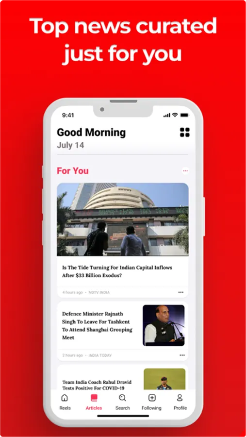 Here at Newsreels, you can discover local and global news. The top Indian news app features reporting on business, entertainment, sports, weather, politics, & crime. If you like to watch the news over your morning coffee then Newsreels is the app for you.