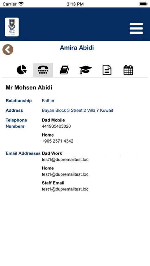 Simple features such as click to call and click to email through the App speed up contact between the School and parents.