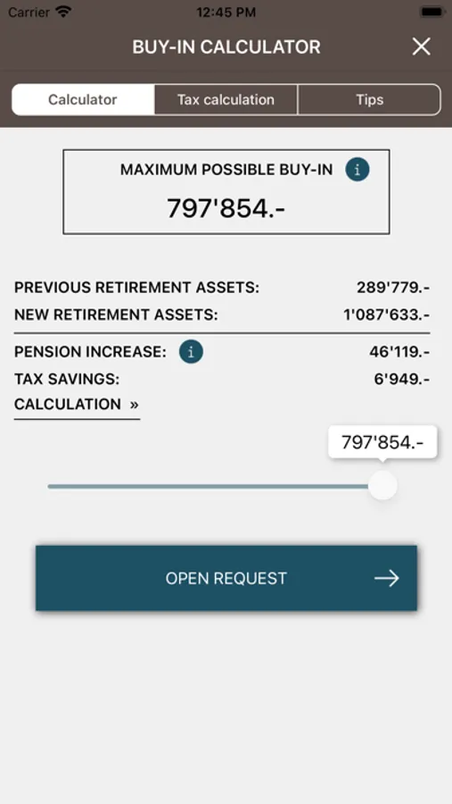 • Buy-in calculator with tax simulation
