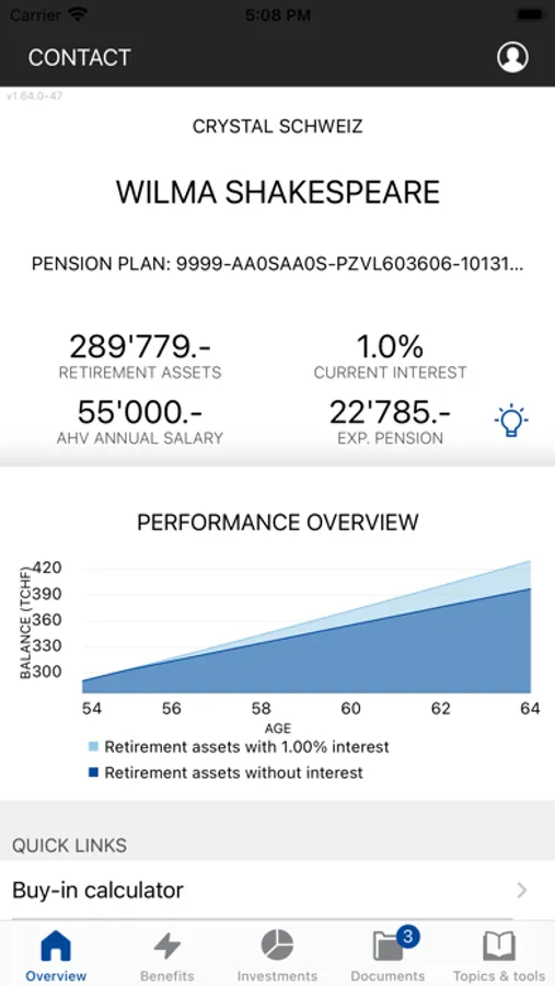 This app is available to all members of the PROSPERITA collective foundation. With this user-friendly, comprehensive and innovative app, policyholders can access their personal pension data, carry out simulations and obtain information on pension issues at any time and from anywhere. The app is connected live to the PROSPERITA management system.