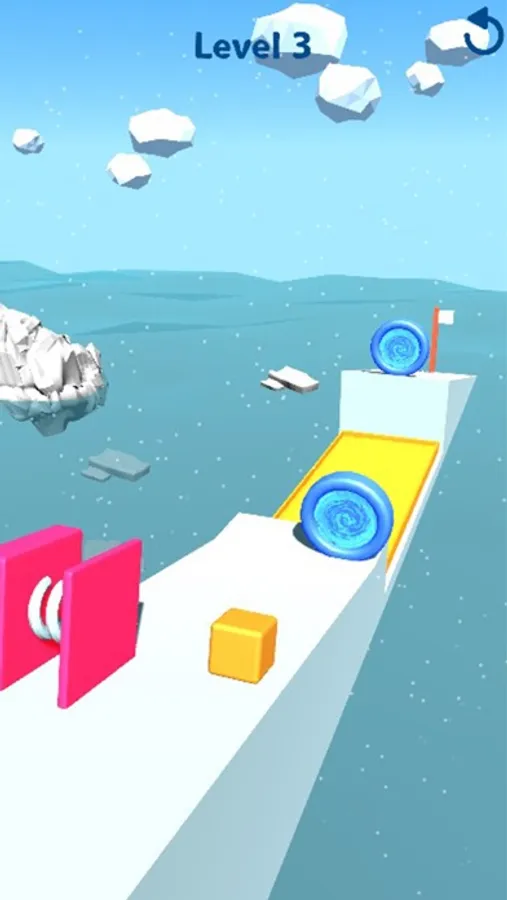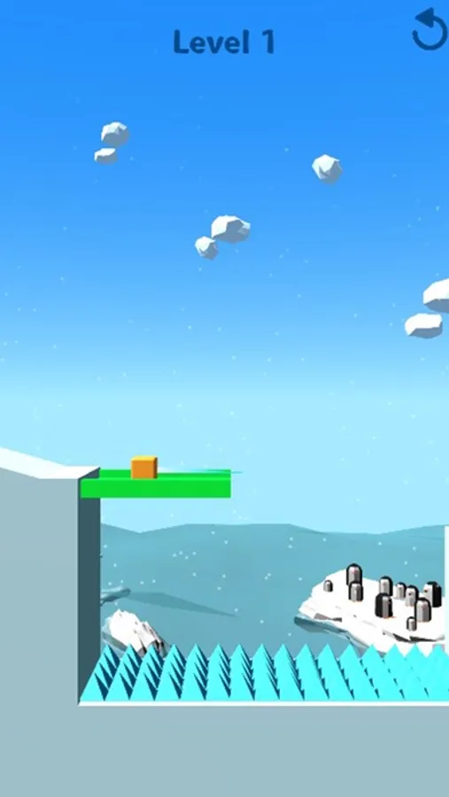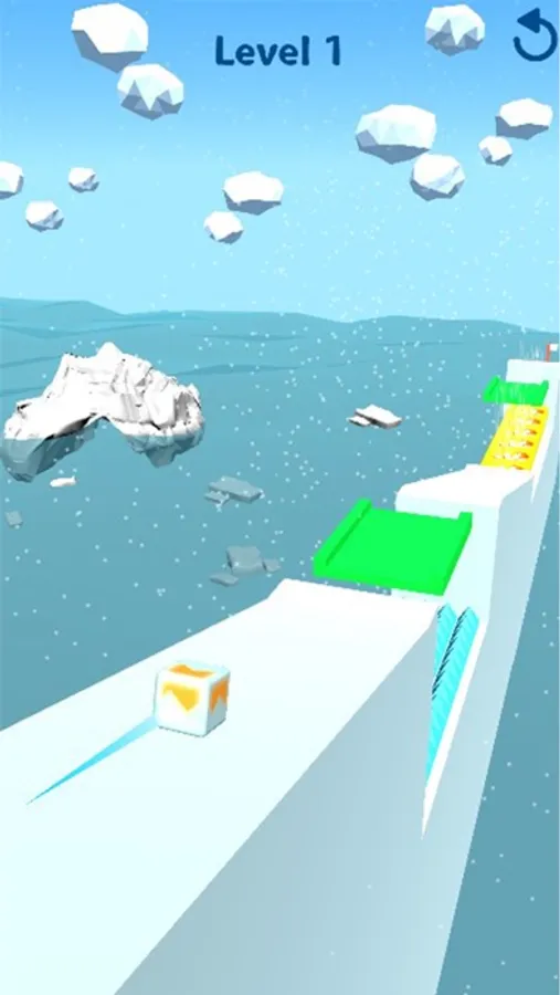 Can you slide the victory? Tap and hold to transform the orange cube into an icy cube and slide down the tilted platforms. Interact with the objects and avoid obstacles. The cube will interact with objects differently when it is frozen and when it is not, so pick the right moments to freeze it and to thaw it out.