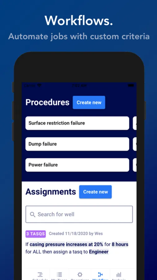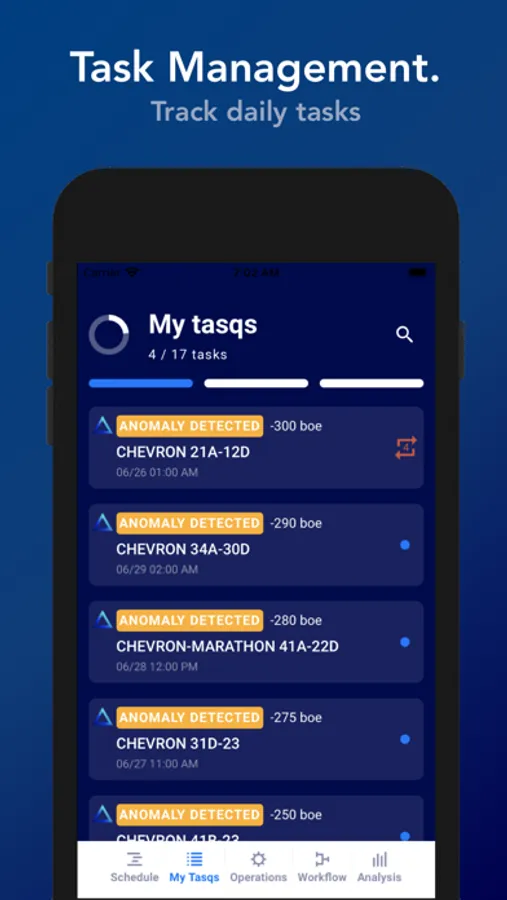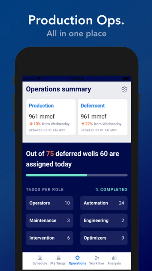 Tasq simplifies operations by linking everyone within an organization. Our task management system connects all roles for better communication, collaboration, and transparency. Our machine learning-based platform answers the question “Why is production down, and what is being done about it?”