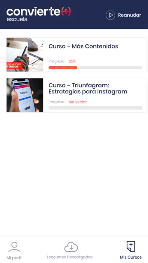 Accede tus formaciones de Escuela Convierte Más desde donde desees. Ahora tus cursos y lecciones estarán en tu bolsillo.