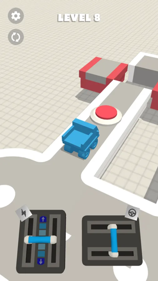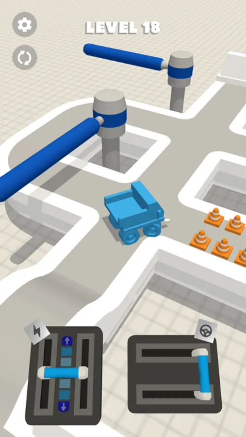 Drive huge vehicles by arranging arms on the screen, solve complex puzzles easily.