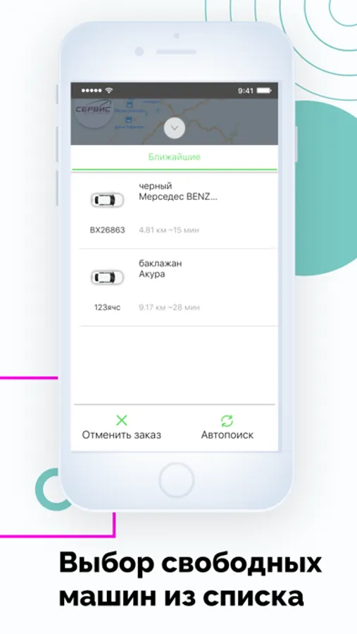 Выберите себе подходящую машину для поездки на карте или из списка свободных.