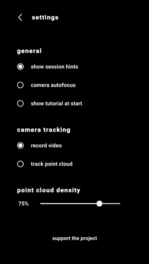 with blendartrack you can easily track your environment - just move you device slowly, place some reference objects and you are ready to track. check out your work in the file browser and transfer the data to your desktop. import the data in blender and you'll receive a solved motion tracking.