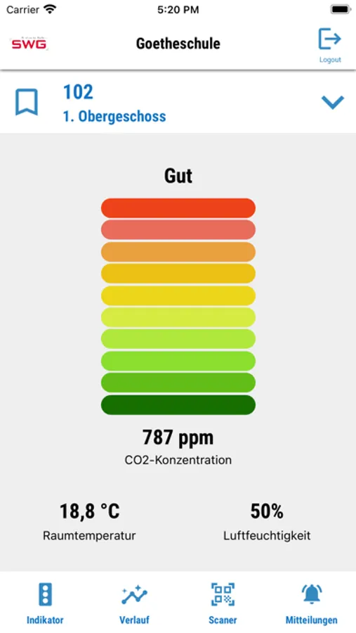 Die App „SWG Monitor“ stellt die übertragenen Sensorwerte, die im LoRaWAN-Netzwerk der Stadtwerke Gießen eingebunden sind, dar.