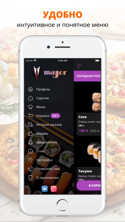 Ресторан доставки maJor занимается доставкой одной из самой вкусной и популярной продукции в городе Саратове!