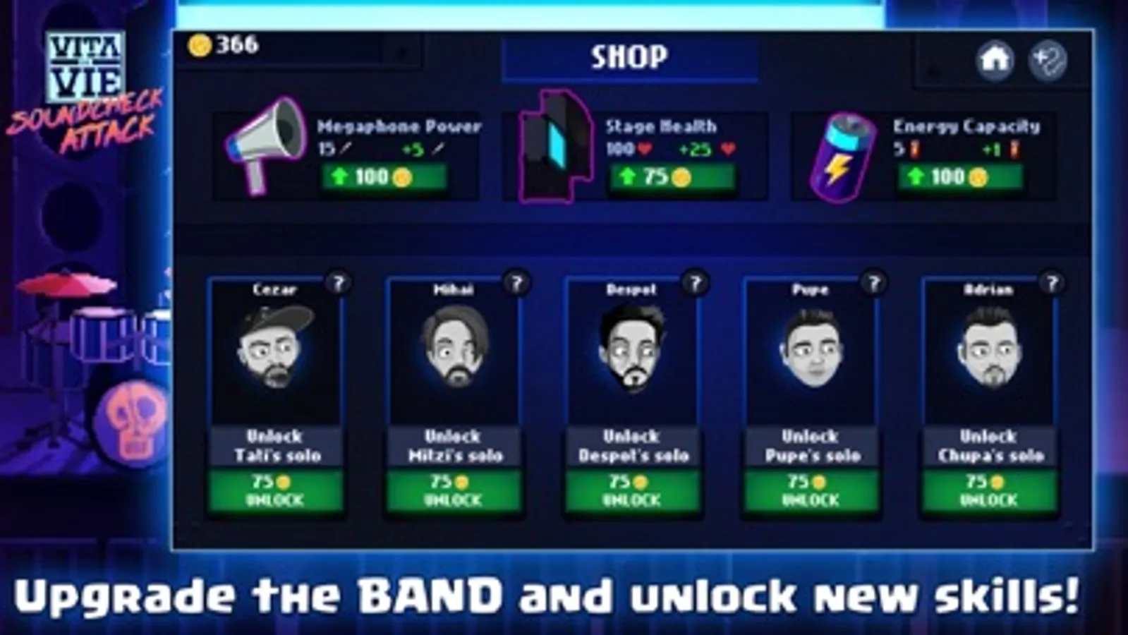 Each band member has unique abilities and a unique connection to the audience. Use them to rock your fans off their feet and get even your harshest critics on your side, making each and every concert memorable!