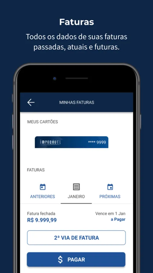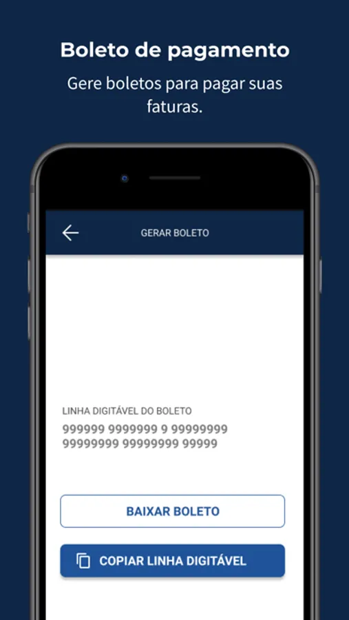 • Ver detalhes das faturas e gerar boleto para pagá-las;