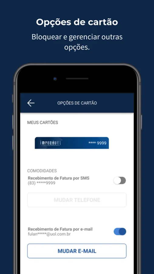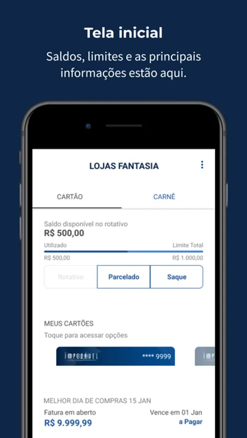 • Visualizar seu saldo disponível para compras no crédito rotativo, parcelado* e saque*;
