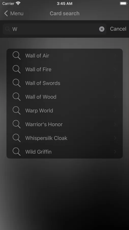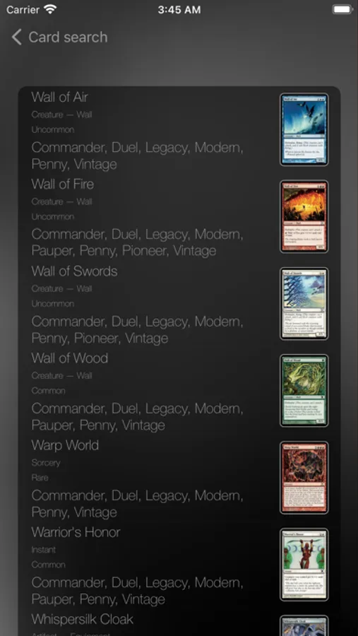 - Smart search with search suggestions, search history, pictures, text, set, rarity, type