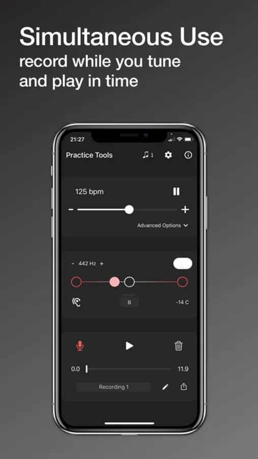 No more switching between Metronome, Recorder or Tuner App! Revolutionize your practice and benefit from the advantages of using Practice Tools.