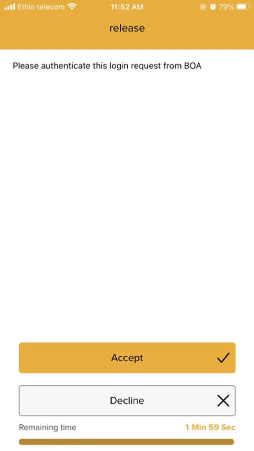 The BOA Verify App allows customers of Bank of Abyssinia to authenticate their logins via Internet Banking and authorize transactions using the app.