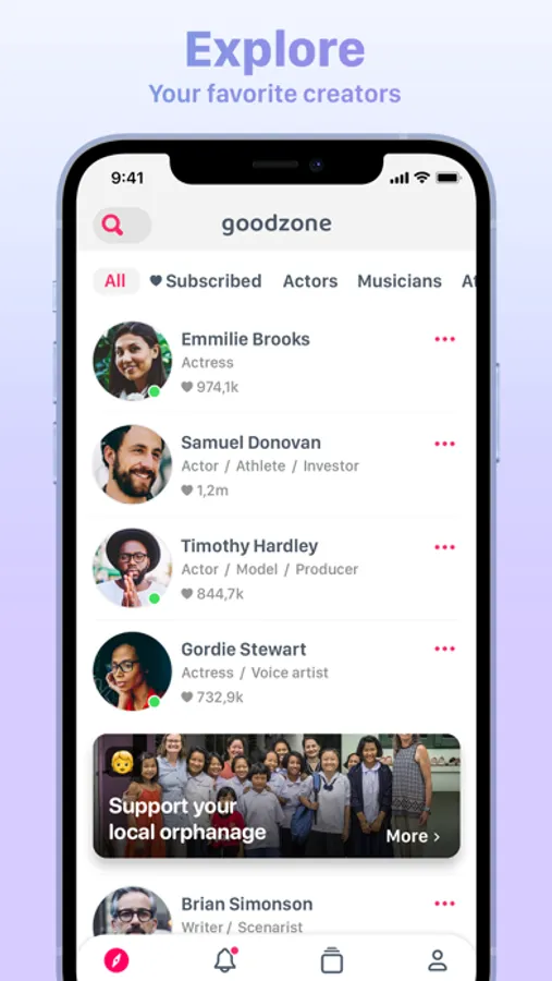 The social network provides the opportunity to connect people around the world apart from their status in one big Goodzone. The network is based on profiles of celebrities and content they share such as live video, real-time video calls, luxury prizes, etc.