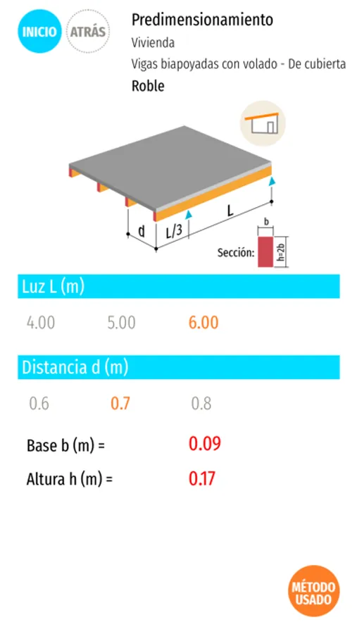 También puede hacer cálculos referenciales de predimensionamiento* de acuerdo al uso que hará del material en las estructuras (entrepisos, cubierta, columnas, etc.).