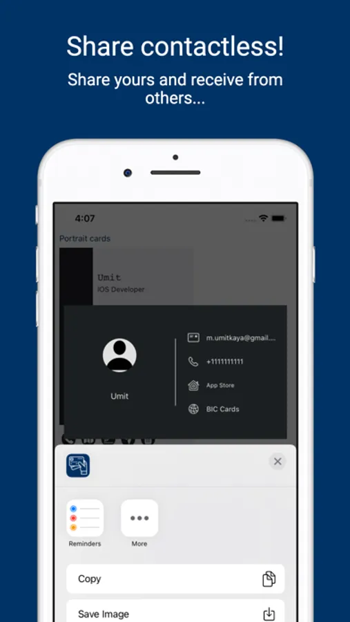 - Contactless share through social media apps while being able to access and interact with all the infos
