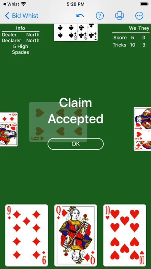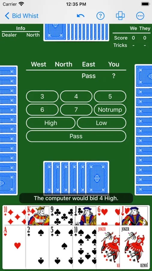 Play with the Bid Whist rules you like against the challenging NeuralPlay AI.