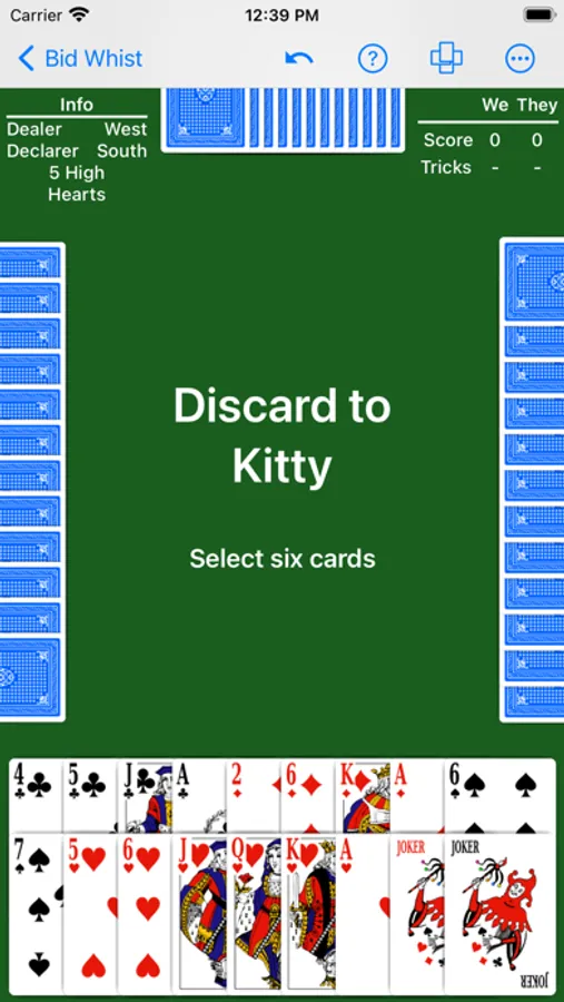• Kitty size. Choose: 6 cards, 5 cards, 4 cards, or no cards.
